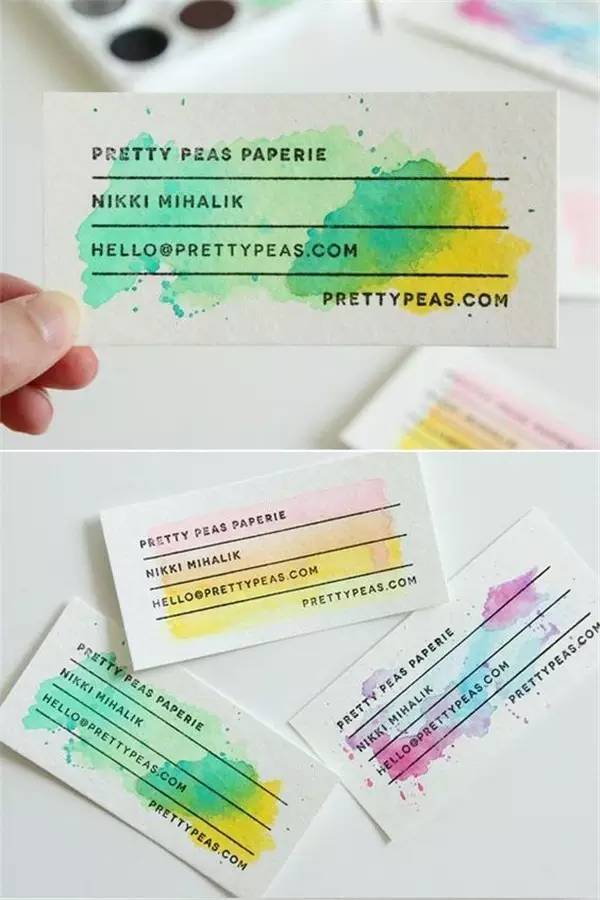 如果你是設(shè)計師,或是藝術(shù)工作者,名片不用特別正式和商務(wù)范,那么你可以試試水彩的。在白底的名片上,隨意勾勒幾筆水彩,瞬間變得小清新十足。