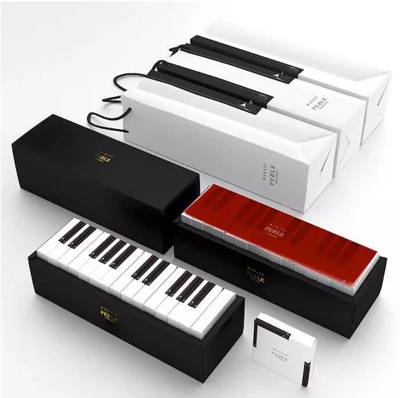 這款鋼琴模樣的蛋糕包裝,是來(lái)自日本的創(chuàng)意,設(shè)計(jì)師非常討喜的將蛋糕紙盒的側(cè)面包裝,設(shè)計(jì)成了鋼琴鍵的樣子,外盒上的黑白包裝也一同呼應(yīng)了鋼琴的主題。這種能呼應(yīng)主題的包裝盒設(shè)計(jì)很是討喜呢。