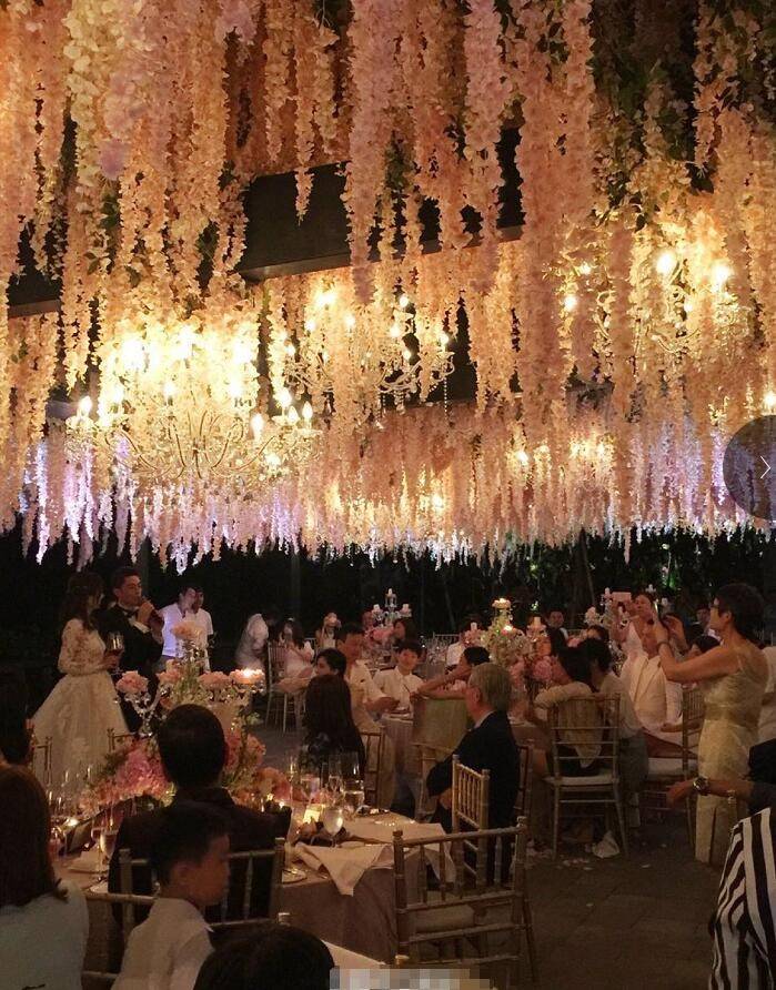 婚禮在寶格麗酒店著名水上婚禮地點(diǎn)舉行,婚禮儀式上,趙薇出席,與范冰冰“還珠幫”合體。此外,胡歌、徐若瑄、周迅、吳奇隆、劉詩詩、劉濤等人現(xiàn)身?;槎Y儀式以撥動愛的心弦為主題,采用林心如最愛的粉絲布置,最引人注意的是舞臺中心的雙層心形花架。 晚宴內(nèi)場曝光!旁邊就是懸崖,能聽到海浪的聲音~布置靈感來自節(jié)日焰火,用了4種不同顏色、50000支的紫藤花串,微妙的漸變由粉到白,中間點(diǎn)綴50盞水晶,好似云霧中綻放的煙火~敲有心思!